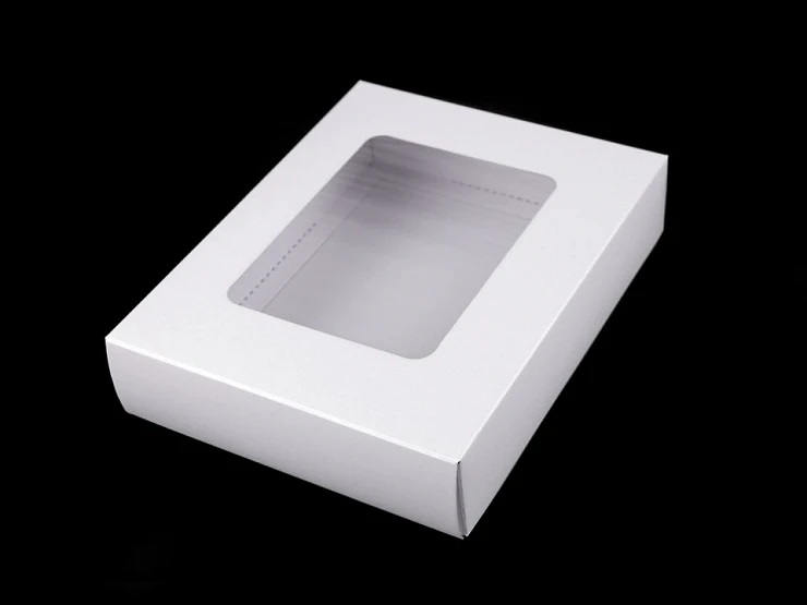 5 ks, biela krabica s okienkom. Veľkosť zloženej krabice je 15x19x4 cm. Veľkosť okienka 10x14 cm. Krabice sú dodávané nezložené.