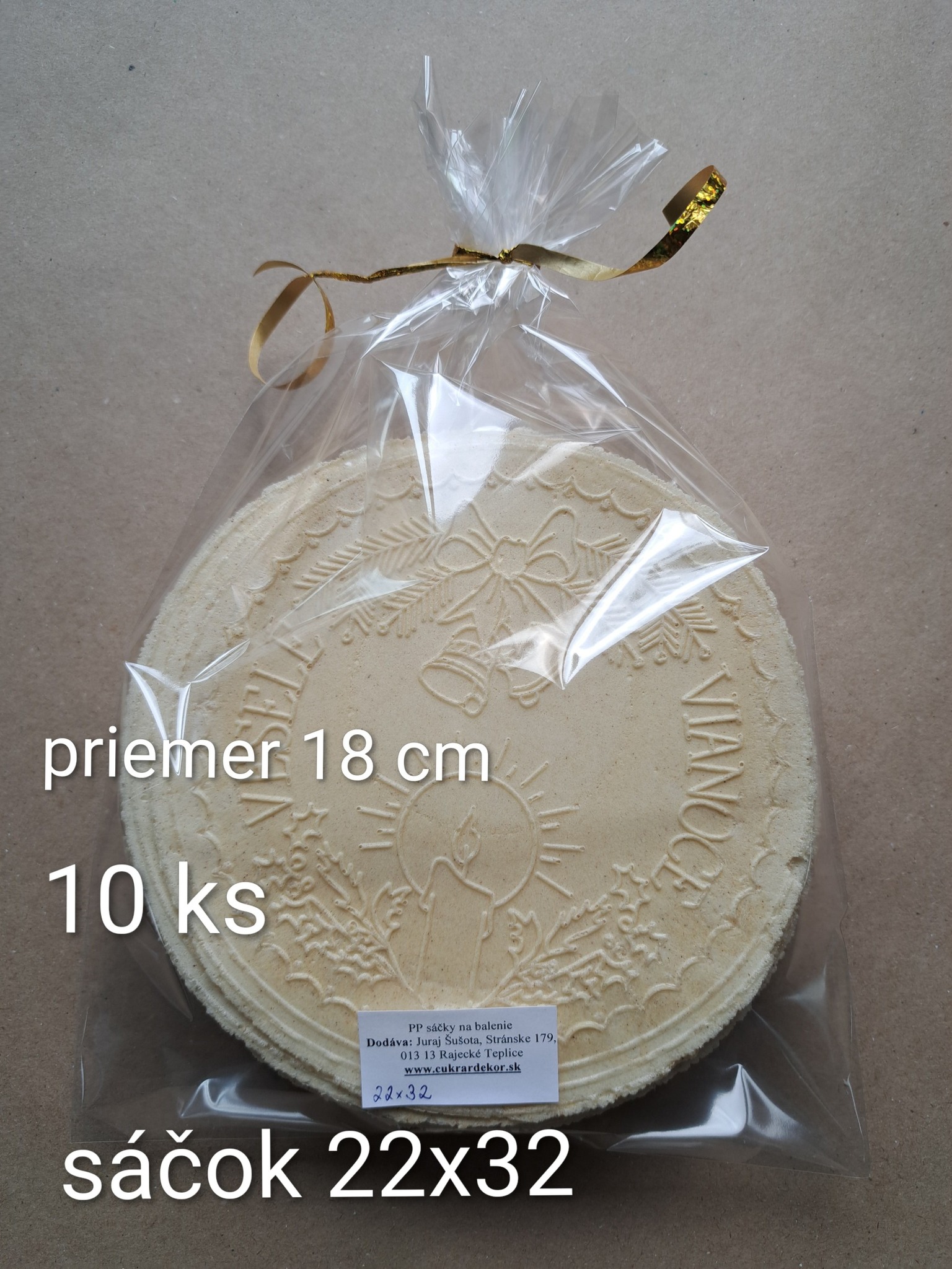 Materiál sáčkov je BOPP - polypropylénová fólia, na Slovensku známa aj ako celofán, avšak upozorňujeme, že nejde o originál celofánu. Sáčky určené na balenie hotových výrobkov určené aj na styk s potravinami. Fólia je priezračná, s vysokým leskom, takže produkty, ktoré do sáčkov budete baliť budú jasne žiariť. Zvýhodnená sada 100 ks v balení. Veľkosť sáčku je 22 x 32 cm. V porovnaní s kúpou samostatných sáčkov v počte 10 ks v balení ušetríte 4,20 €.
