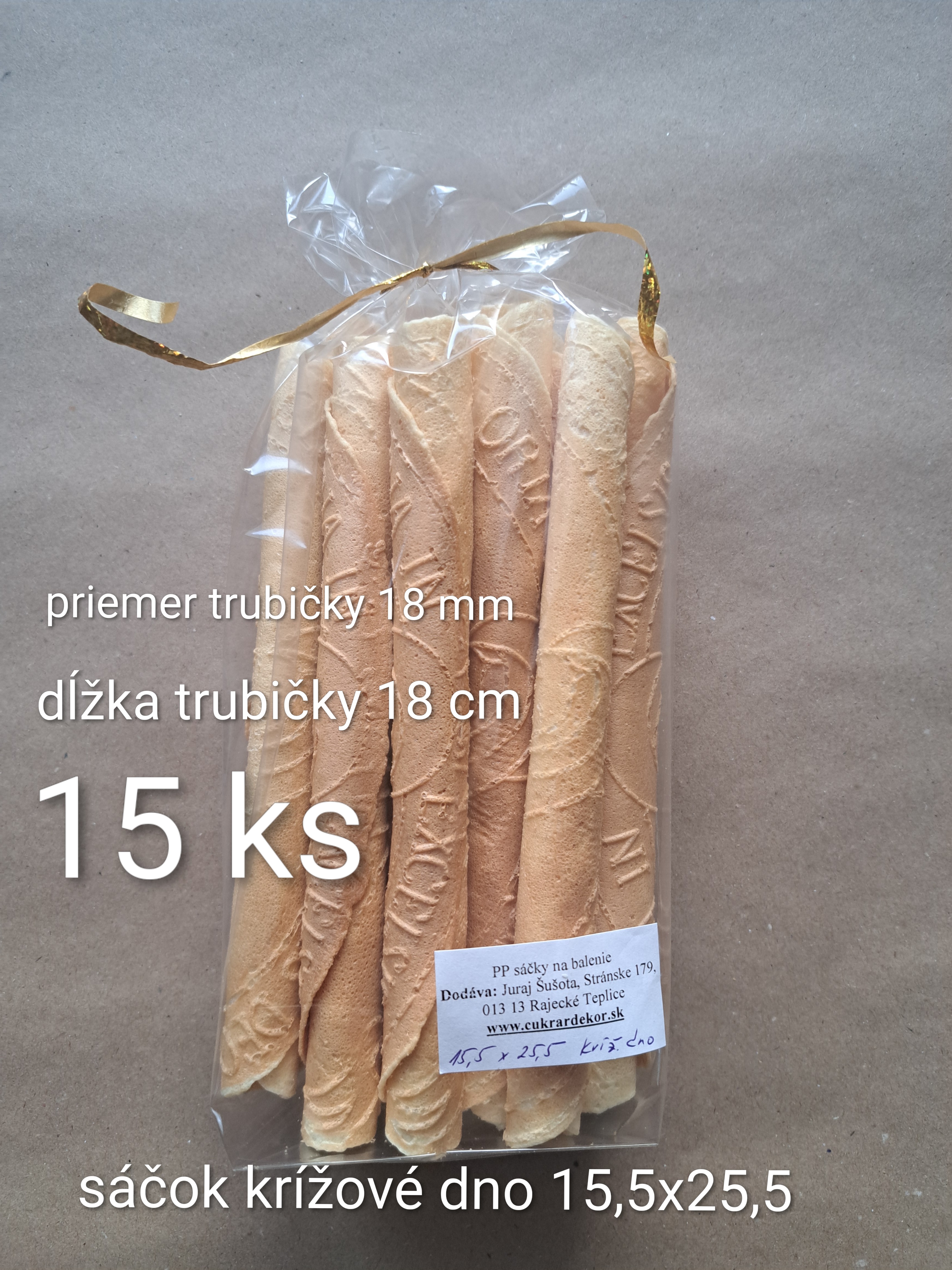 Materiál sáčkov je BOPP - polypropylénová fólia, na Slovensku známa aj ako celofán, avšak upozorňujeme, že nejde o originál celofánu. Sáčky určené na balenie hotových výrobkov určené aj na styk s potravinami. Fólia je priezračná, s vysokým leskom, takže produkty, ktoré do sáčkov budete baliť budú jasne žiariť. Dno má šesťuhoľníkový tvar, pričom rozmer dna pred zložením je 15,5 a 6,5 cm a výška sáčku je 25,5 cm. V balení sa nachádza 100 ks.