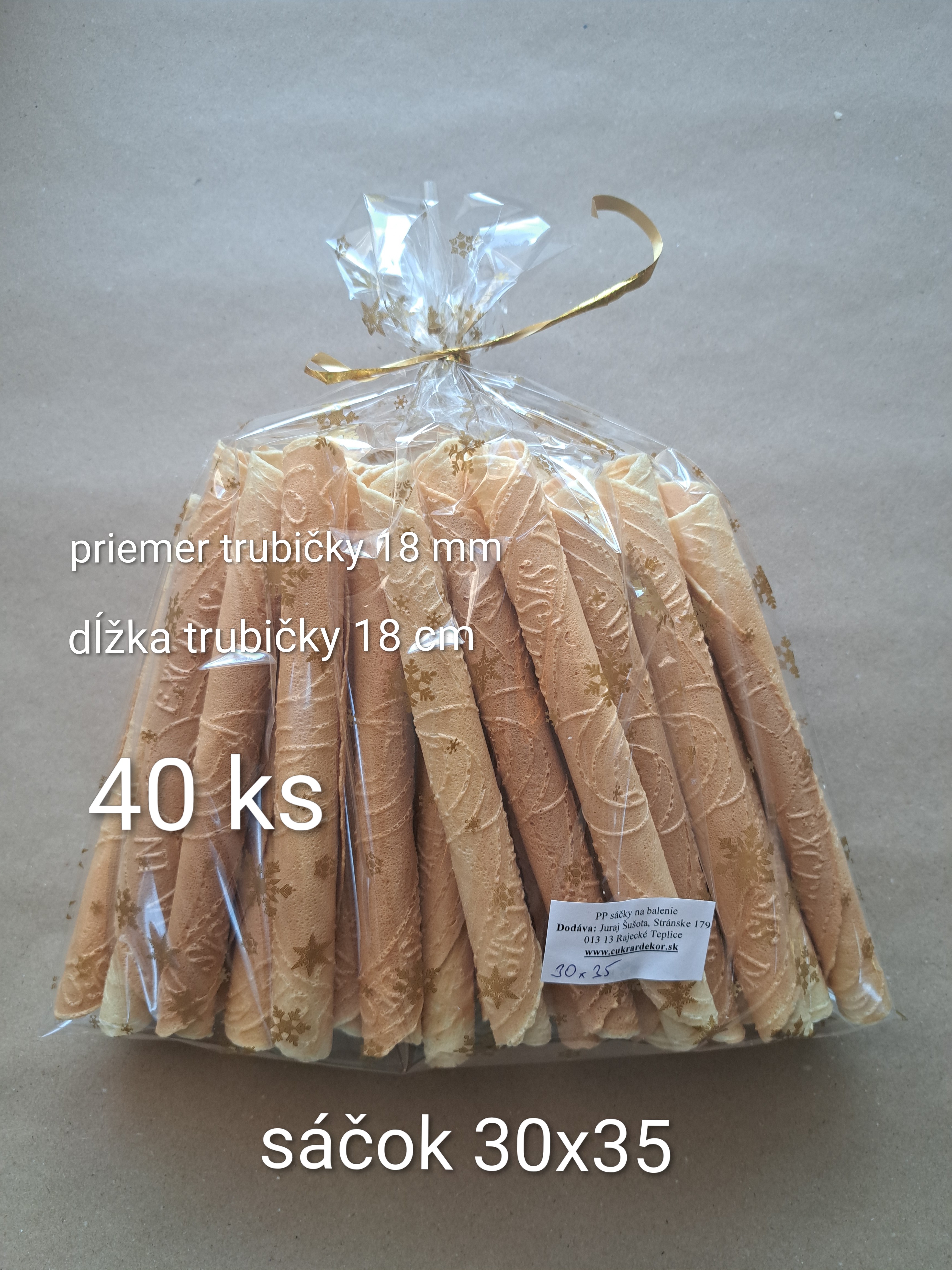 Materiál sáčkov je PP - polypropylénová fólia, na Slovensku známa aj ako celofán, avšak upozorňujeme, že nejde o originál celofánu. Sáčky určené na balenie hotových výrobkov určené aj na styk s potravinami. Fólia je priezračná s potlačou, s vysokým leskom, takže produkty, ktoré do sáčkov budete baliť budú jasne žiariť. V balení sa nachádza 10 ks.