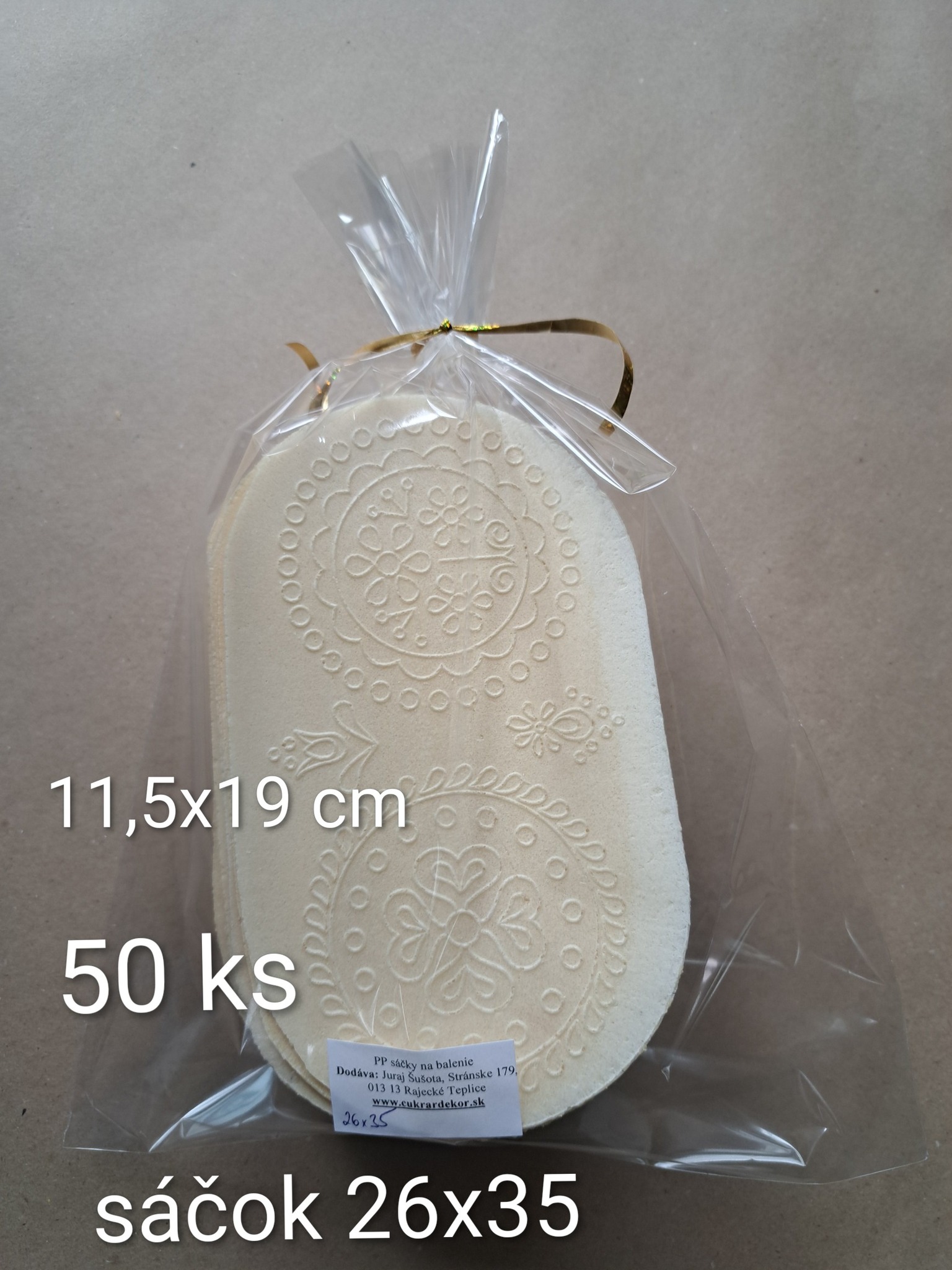 Materiál sáčkov je BOPP - polypropylénová fólia, na Slovensku známa aj ako celofán, avšak upozorňujeme, že nejde o originál celofánu. Sáčky určené na balenie hotových výrobkov určené aj na styk s potravinami. Fólia je priezračná, s vysokým leskom, takže produkty, ktoré do sáčkov budete baliť budú jasne žiariť. Zvýhodnená sada 100 ks v balení. Veľkosť sáčku je 26 x 35 cm.