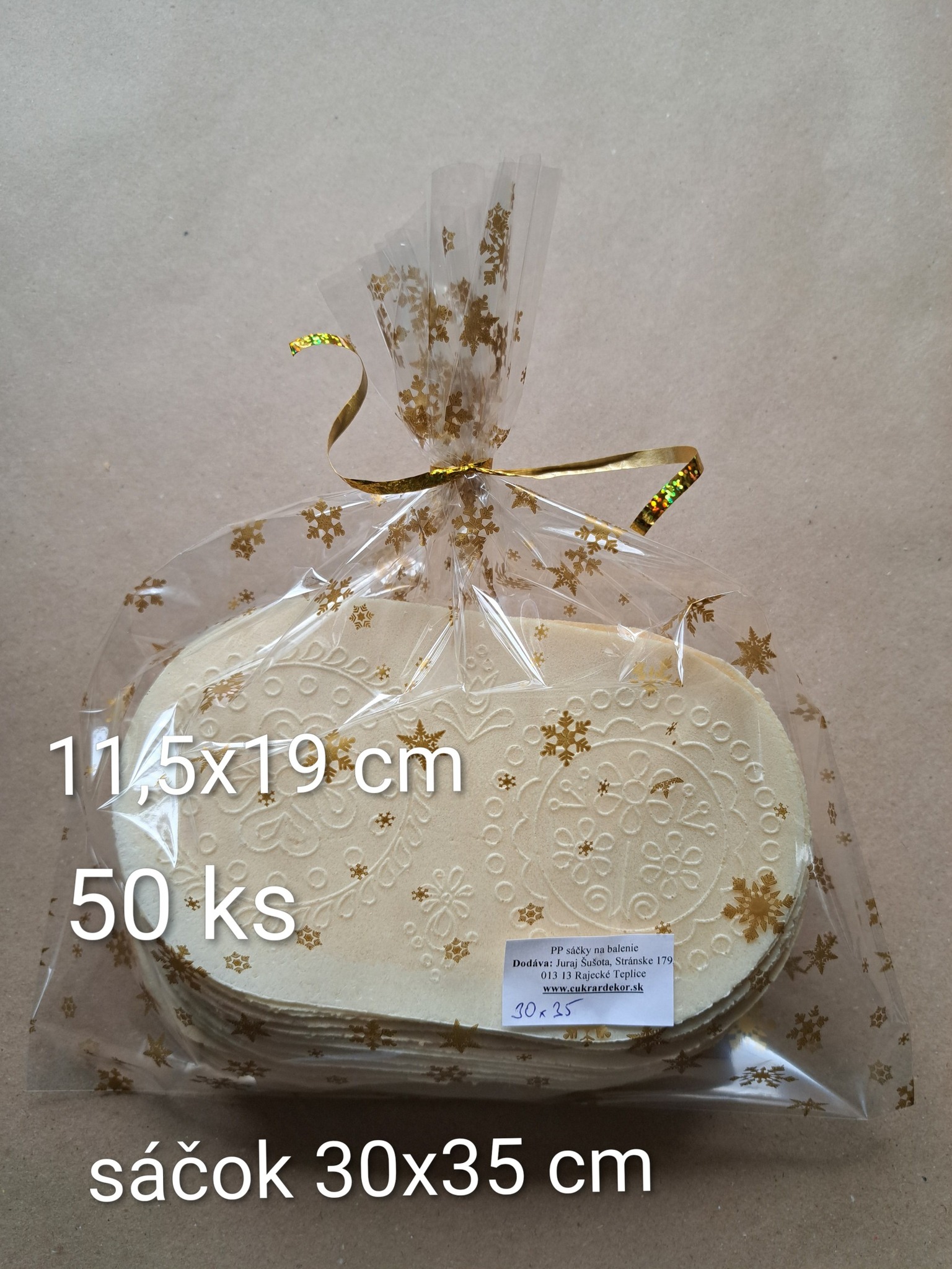 Úvod »BOPP "celofánové" sáčky»na oblátky a trubičky » Sáčky na balenie 30x35cm vločky zlaté 10 ks